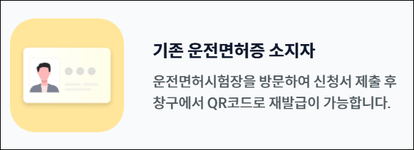 - 그렇지 않다면 운전면허시험장, 경찰서 민원실 방문 또는 안전운전통합민원 홈페이지에서 IC 운전면허증을 신청해야 합니다.