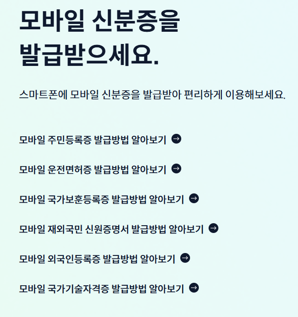 모바일 운전면허증 발급 방법, 모바일 신분증 소개, 이용안내, 발급안내, 도난/분실 신고 등 제공