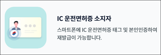 - 스마트폰에 IC 운전면허증 태그 후 본인 인증을 하면 자동으로 재발급됩니다.